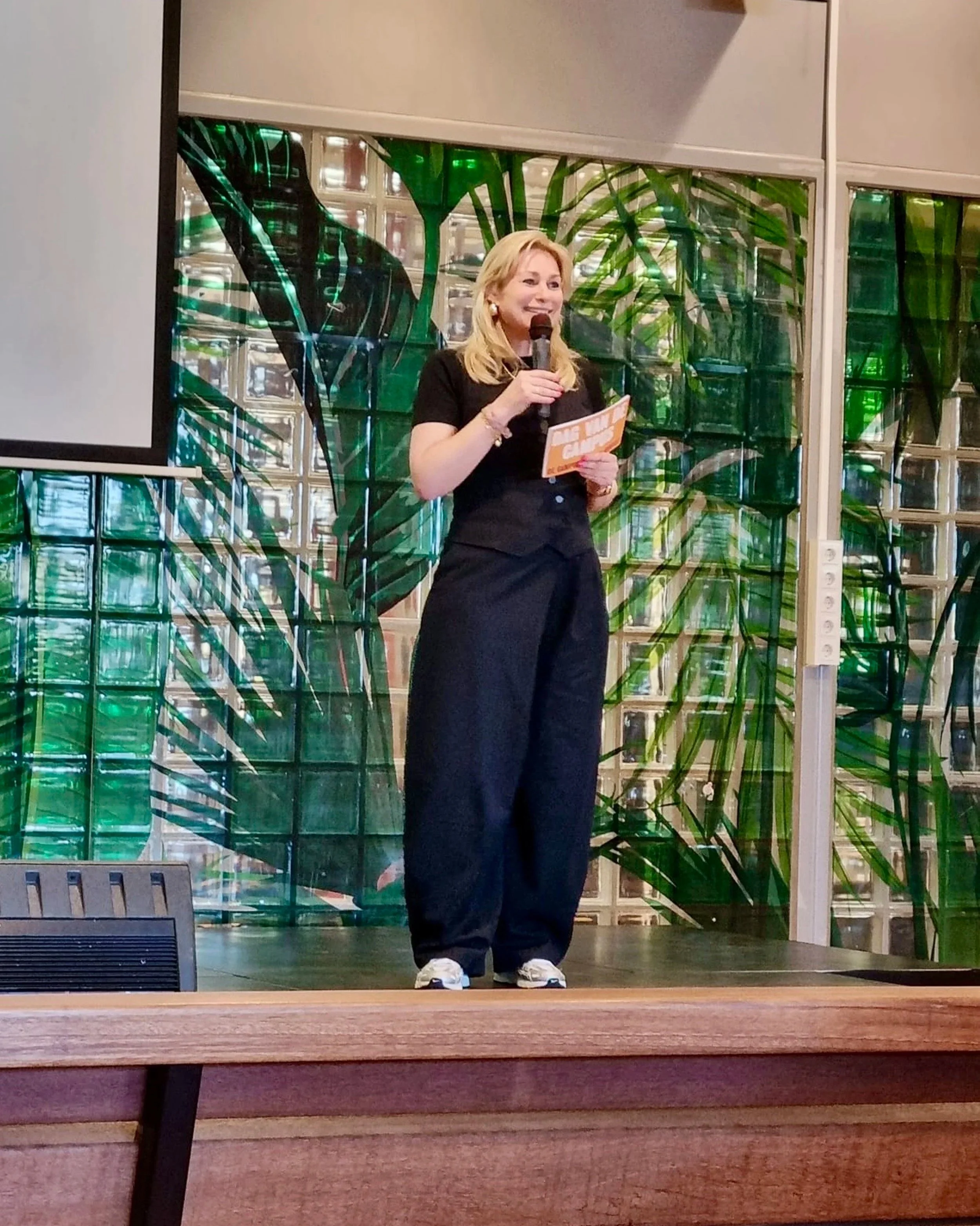 Als dagvoorzitter laat Leonie op haar eigen vrolijke en toegankelijke manier bijeenkomsten goed verlopen, waarbij ze verbinding creëert tussen inhoud, sprekers en publiek.